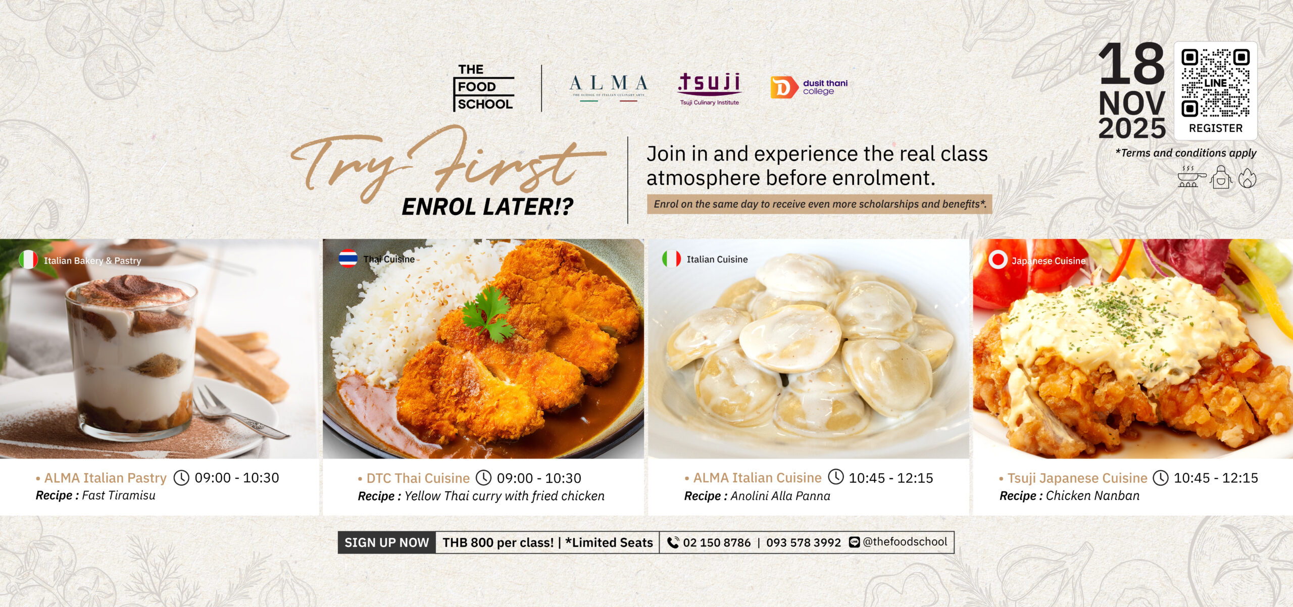 Discover our students’ success stories and read inspiring testimonials that highlight world-class culinary training and experiences at The Food School Bangkok.