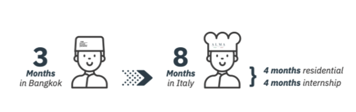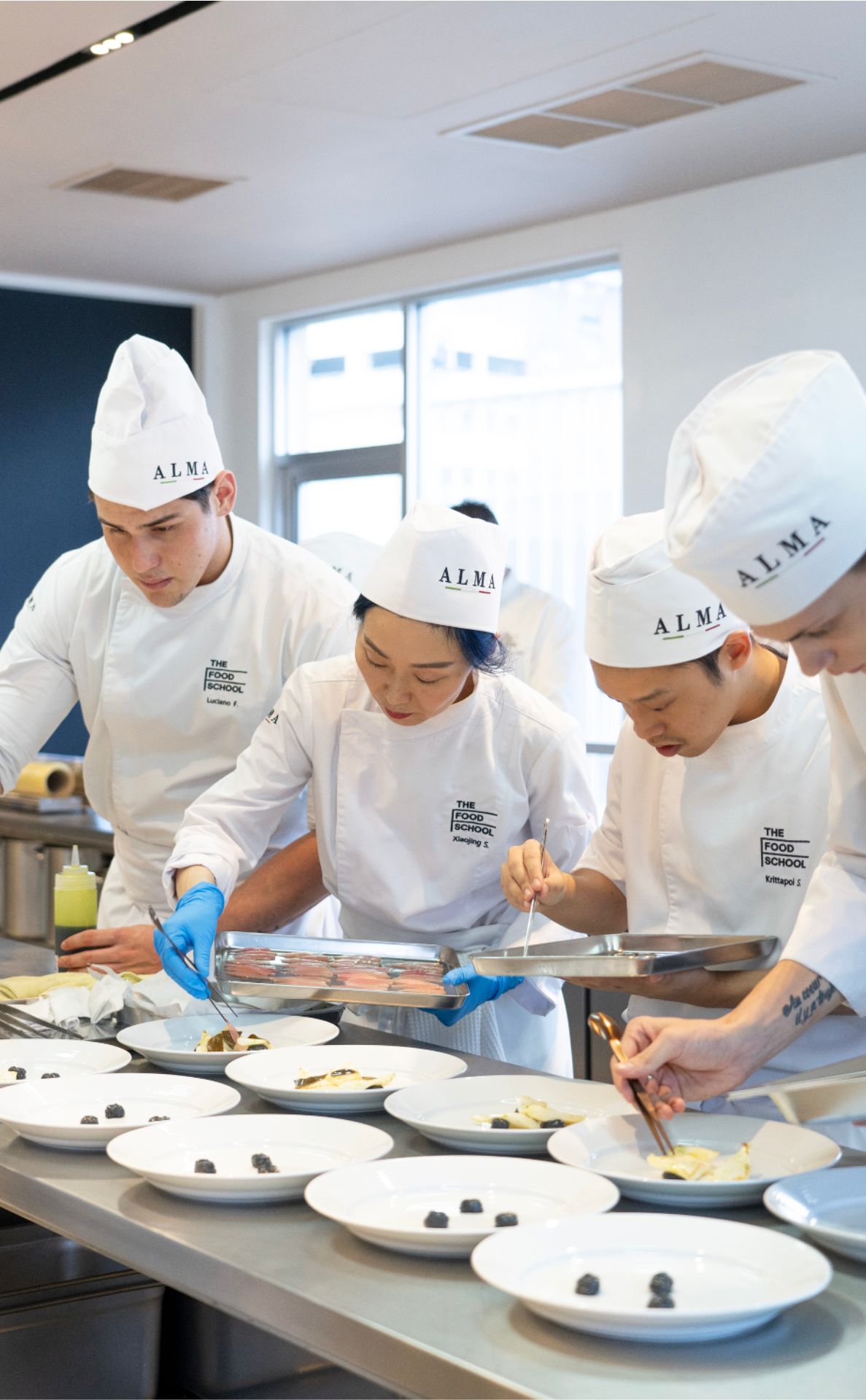 Continue your culinary journey from Bangkok straight to the heart of Italy. Students who successfully complete the ALMA Essential Level in Italian Culinary Arts at The Food School Bangkok are eligible for direct entry into ALMA’s prestigious international